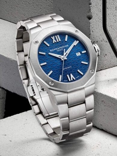 Every Red Arrows watch in the collection features the Red Arrows insignia on the case back which shows the aircraft in their trademark diamond nine formation, with the moto Éclat, a French word meaning “brilliance” or “excellence”. This Red Arrows model has a 1/5 second chronograph, world time in 24 cities, 12/24 hour time and is water resistant to 100m.